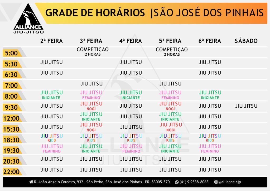Na Alliance São José dos Pinhais, vivemos o jiu-jitsu com toda nossa paixão. É mais que uma arte marcial; é o que nos motiva diariamente. Cada treino e cada técnica refletem nosso compromisso em transformar vidas, formando pessoas mais fortes e resilientes. Estamos aqui para compartilhar esse amor e dedicação com todos que desejam fazer parte dessa jornada.